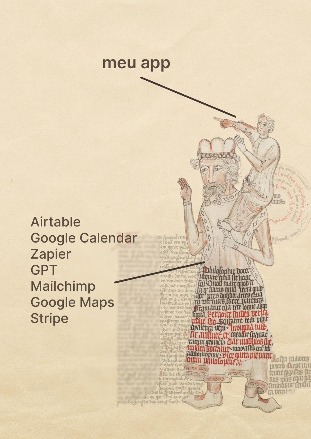 Quando comecei a desenvolver no-code eu ainda não entendia o poder das chamadas API. À medida que fui descobrindo, vi que eu poderia integrar meu aplicativo com outros grandes serviços e fornecer soluções mais robustas, expandindo os meus horizontes de desenvolvimento. Eu poderia subir nos ombros de gigantes.