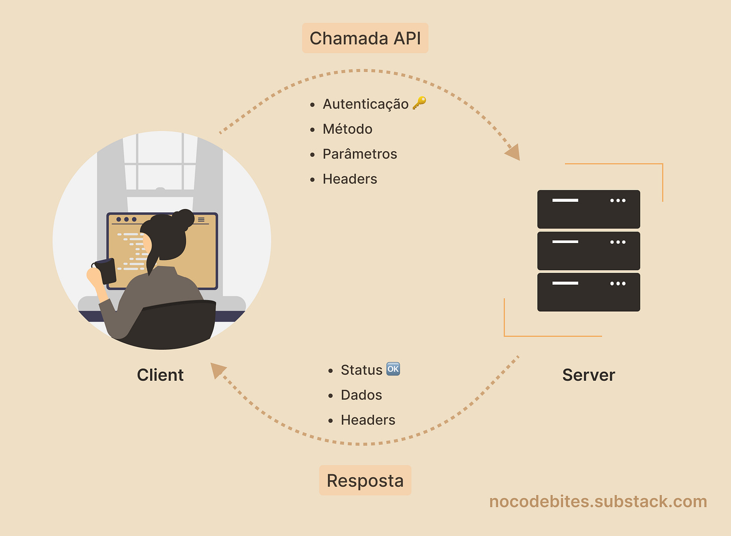 Pensa só, ao contrário de nós, os computadores não precisam de uma interface bonita para trocar informações, eles são bem direto ao ponto. Basta executar a chamada API com uma estrutura padrão e com as autenticações necessárias para você acessar os dados de outro aplicativo.